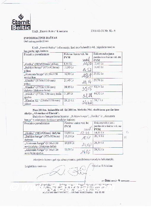 Eternit Baltic lakštai gaminti Lietuvoje. KAINOS (60,64 KB)